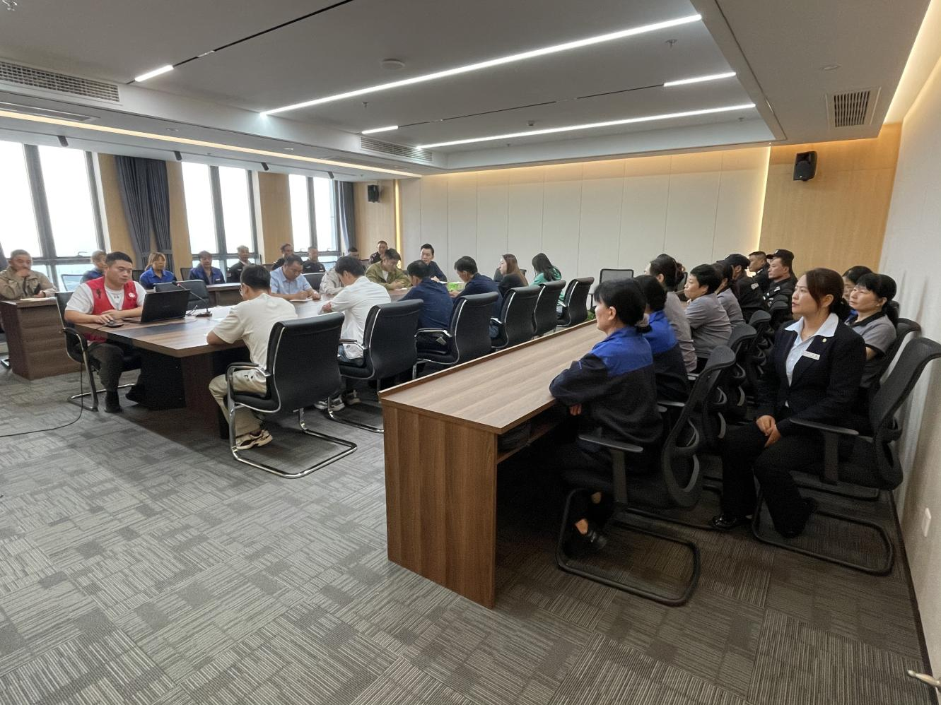 消防維保單位負(fù)責(zé)人通過近年來發(fā)生的真實(shí)火災(zāi)案例,生動展示了火災(zāi)的危害性與消防安全的重要性,觸目驚心的案例督促員工們時(shí)刻保持警惕、防范于未然。隨后,專家詳細(xì)講解了火災(zāi)的成因、發(fā)展階段及嚴(yán)重危害等,全面介紹了大樓內(nèi)的消防設(shè)施如滅火器、消防栓、煙霧報(bào)警器等的使用方法,著重講授了火災(zāi)預(yù)防措施與應(yīng)急處置流程,確保員工們在面對突發(fā)情況時(shí)能夠迅速、有效地采取行動。員工們?nèi)褙炞⒌伛雎犞v解,積極記錄關(guān)鍵信息,展現(xiàn)出對消防安全的高度重視與積極態(tài)度。
