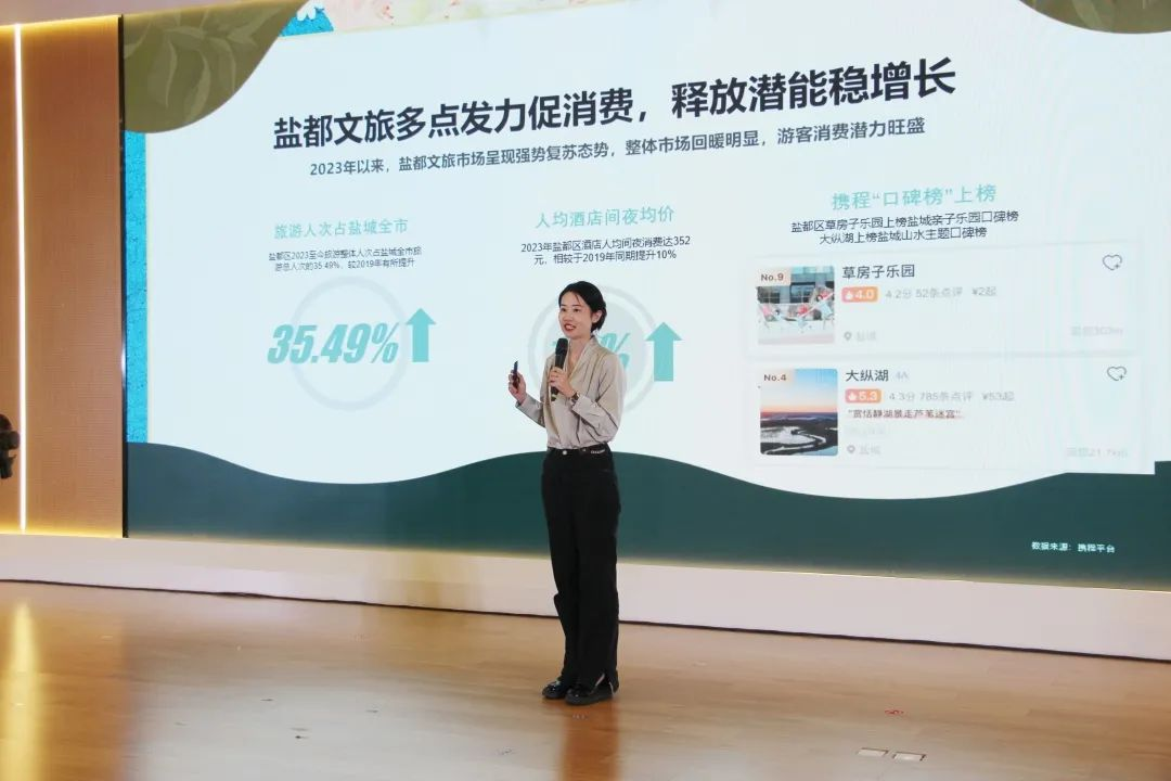 在推介會上,攜程集團政府合作部項目總監(jiān)王焱發(fā)布“鹽都文旅及攜程集團2023年戰(zhàn)略合作”重點內(nèi)容,深度剖析雙方未來合作的藍圖。她提到,2023年以來,鹽都文旅市場呈現(xiàn)強勢復蘇態(tài)勢,整體市場回暖明顯。攜程一直都是鹽城文旅發(fā)展道路上堅實的合作伙伴。去年雙方共同打造的“到鹽城·嗨周末”品牌獲評文旅部2022年旅游宣傳推廣優(yōu)秀案例。而今年,攜程將繼續(xù)深耕鹽城文旅,在全市文旅資源的加持之下,依托2023年攜程集團振興A計劃開拓區(qū)縣合作,與鹽都文旅建立戰(zhàn)略合作關系,協(xié)同并進共育花開。攜程集團將聚合站內(nèi)外流量資源,從產(chǎn)品、營銷、消費三大層面開足馬力驅動文旅建設加速度,“串珠成鏈”,多措并舉推動鹽都文旅造就高質量發(fā)展格局。