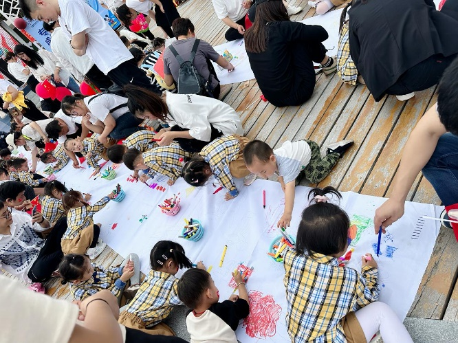 秋風(fēng)起,月漸圓;紅旗飄揚(yáng),愛國(guó)情深。在老師的帶領(lǐng)下,孩子們揮舞著紅旗歌唱著對(duì)祖國(guó)媽媽的愛;在爸爸媽媽的陪同下,孩子們用充滿想象的畫筆在長(zhǎng)卷上繪出五彩畫卷,并出色地完成了自己的花燈。此次活動(dòng)既讓孩子們?cè)诳鞓?lè)節(jié)日氛圍里感受中國(guó)傳統(tǒng)文化的魅力,又鍛煉了孩子們的動(dòng)手能力,增進(jìn)了親子間的感情。